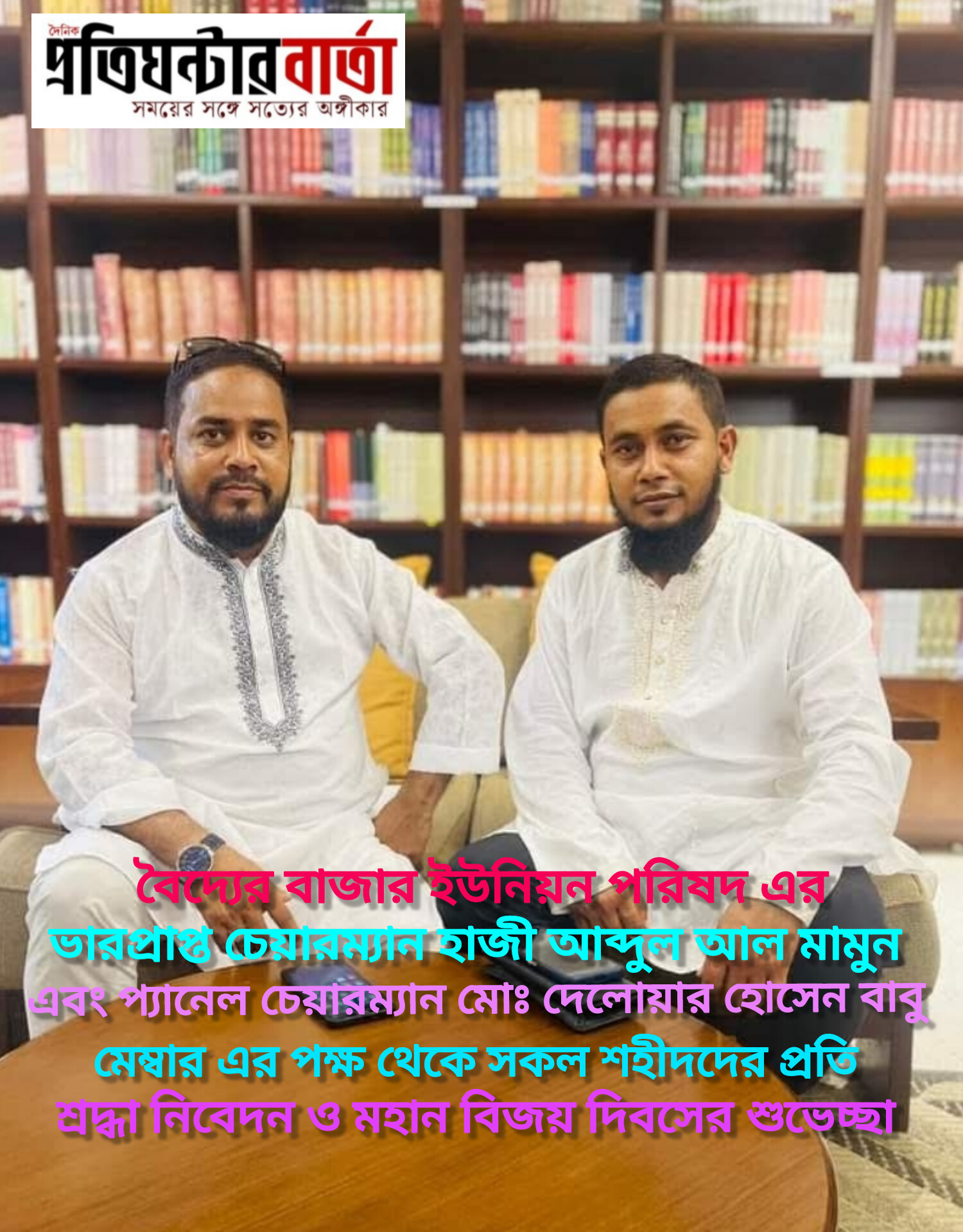 মহান বিজয় দিবসের শুভেচ্ছা জানিয়েছেন ভারপ্রাপ্ত চেয়ারম্যান আব্দুল্লাহ আল মামুন ও দেলোয়ার হোসেন বাবু মেম্বার
