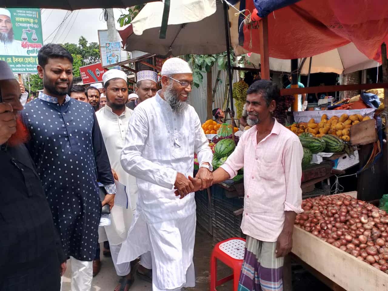 সোনারগাঁয়ে আদমপুর বাজারে গণসংযোগ করলেন জামায়েত ইসলামের আমির প্রিন্সিপাল ডঃ ইকবাল